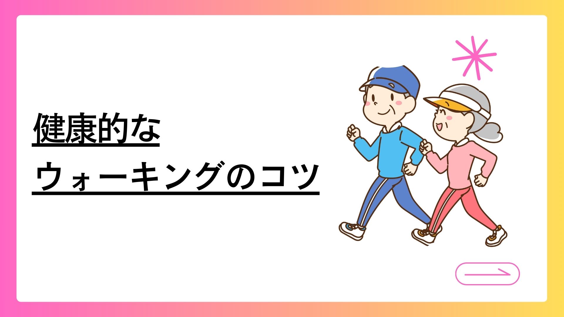 こんにちは。ウォーキングは、歩行ができる方にとって手軽に始められる運動です。今日は、健康的なウォーキングのためのポイントをご紹介します。
